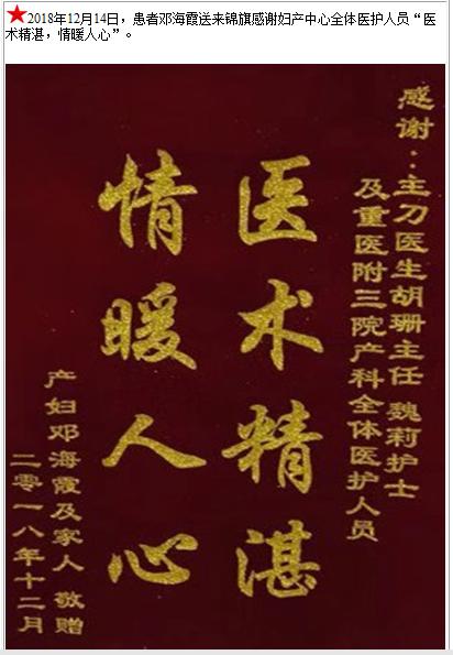 患者邓海霞送来锦旗感谢妇产中心全体医护人员-锦旗-患者心声-患者服务-重庆医科大学附属第三医院【官方网站】