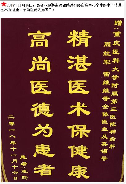 患者张玲送来锦旗感谢神经疾病中心全体医生-锦旗-患者心声-患者服务-重庆医科大学附属第三医院【官方网站】