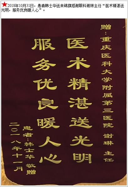 患者韩士华送来锦旗感谢眼科谢琳主任-锦旗-患者心声-患者服务-重庆医科大学附属第三医院【官方网站】