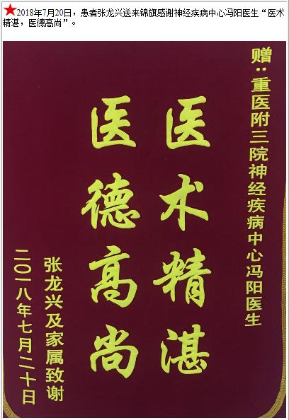 患者张龙兴送来锦旗感谢神经疾病中心冯阳医生-锦旗-患者心声-患者服务-重庆医科大学附属第三医院【官方网站】