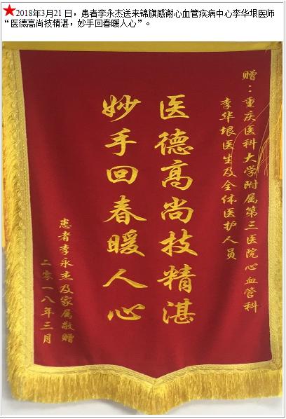 患者李永杰送来锦旗感谢心血管疾病中心李华垠医师-锦旗-患者心声-患者服务-重庆医科大学附属第三医院【官方网站】