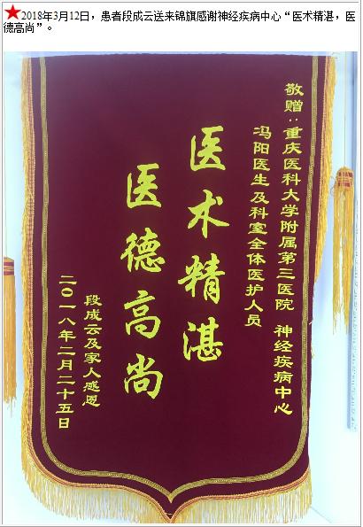 患者段成云送来锦旗感谢神经疾病中心-锦旗-患者心声-患者服务-重庆医科大学附属第三医院【官方网站】
