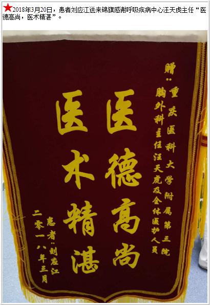 患者刘应江送来锦旗感谢呼吸疾病中心汪天虎主任-锦旗-患者心声-患者服务-重庆医科大学附属第三医院【官方网站】