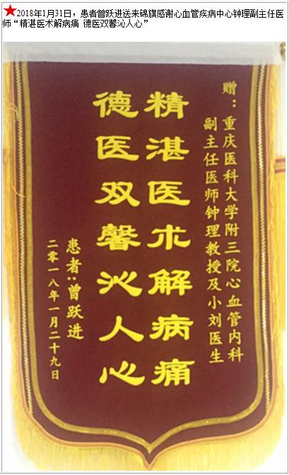 患者曾跃进送来锦旗感谢心血管疾病中心钟理副主任医师-锦旗-患者心声-患者服务-重庆医科大学附属第三医院【官方网站】
