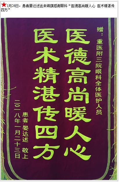 患者晏达述送来锦旗感谢眼科-锦旗-患者心声-患者服务-重庆医科大学附属第三医院【官方网站】