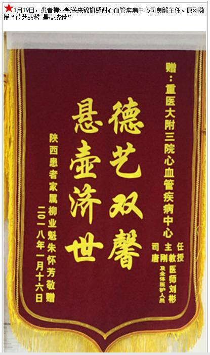 患者柳业魁送来锦旗感谢心血管疾病中心司良毅主任、唐刚教授-锦旗-患者心声-患者服务-重庆医科大学附属第三医院【官方网站】