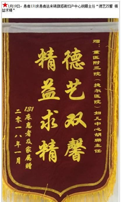 患者131床患者送来锦旗感谢妇产中心胡珊主任-锦旗-患者心声-患者服务-重庆医科大学附属第三医院【官方网站】