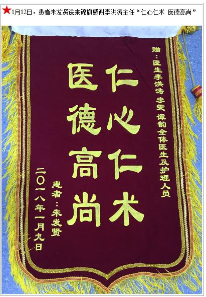 患者朱发贤送来锦旗感谢李洪涛主任-锦旗-患者心声-患者服务-重庆医科大学附属第三医院【官方网站】