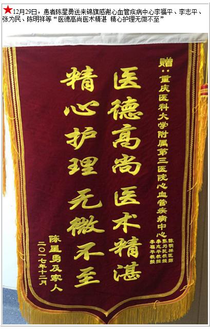 患者陈星勇送来锦旗感谢心血管疾病中心李福平、李志平、张为民、陈明祥等-锦旗-患者心声-患者服务-重庆医科大学附属第三医院【官方网站】