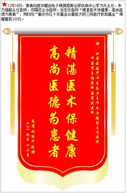 患者向丽华赠送电子锦旗感谢泌尿疾病中心李为兵主任等人,并医疗救助基金捐赠善款100元-锦旗-患者心声-患者服务-重庆医科大学附属第三医院【官方网站】