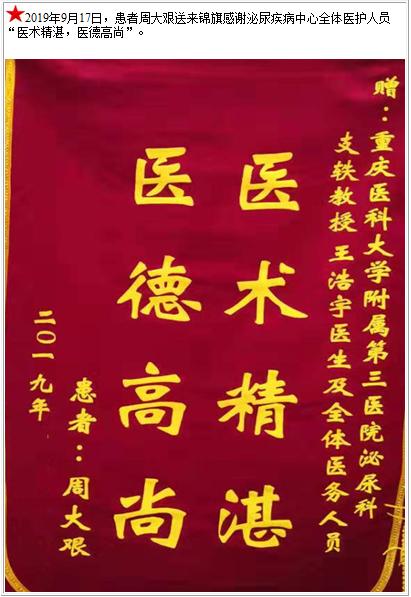 患者周大艰送来锦旗感谢泌尿疾病中心全体医护人员-锦旗-患者心声-患者服务-重庆医科大学附属第三医院【官方网站】