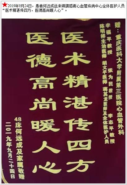 患者何远成送来锦旗感谢心血管疾病中心全体医护人员-锦旗-患者心声-患者服务-重庆医科大学附属第三医院【官方网站】