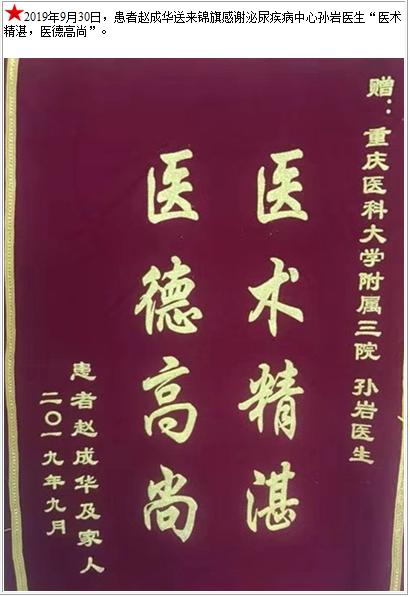 患者赵成华送来锦旗感谢泌尿疾病中心孙岩医生-锦旗-患者心声-患者服务-重庆医科大学附属第三医院【官方网站】