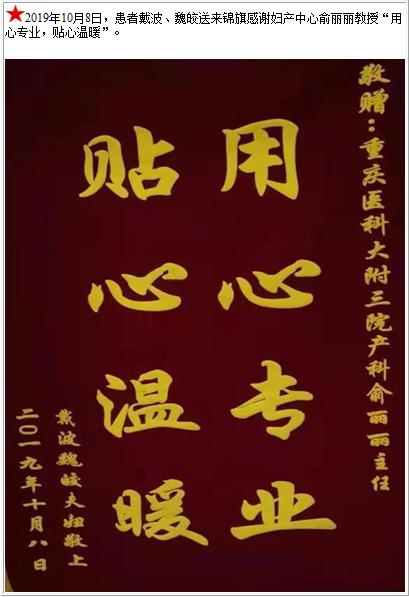 患者戴波、魏皎送来锦旗感谢妇产中心俞丽丽教授“用心专业,贴心温暖”-锦旗-患者心声-患者服务-重庆医科大学附属第三医院【官方网站】
