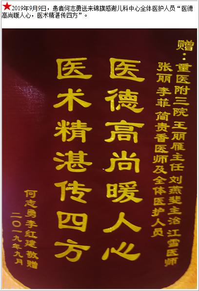 患者何志勇送来锦旗感谢儿科中心全体医护人员-锦旗-患者心声-患者服务-重庆医科大学附属第三医院【官方网站】