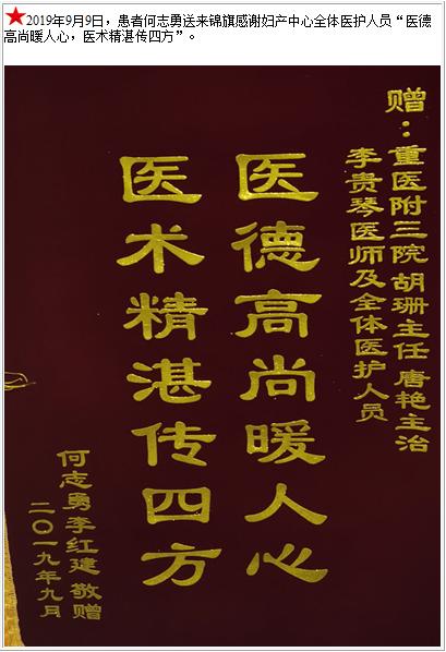 患者何志勇送来锦旗感谢妇产中心全体医护人员-锦旗-患者心声-患者服务-重庆医科大学附属第三医院【官方网站】