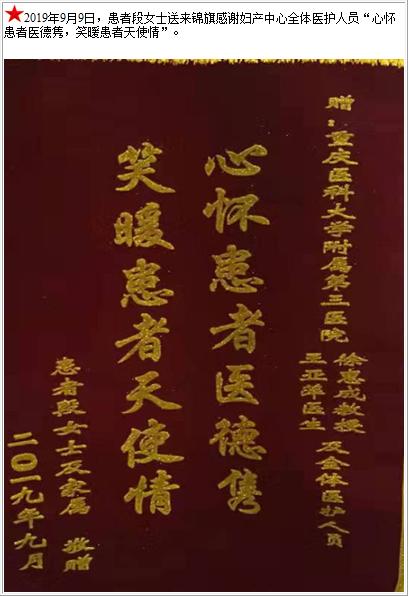 患者段女士送来锦旗感谢妇产中心全体医护人员-锦旗-患者心声-患者服务-重庆医科大学附属第三医院【官方网站】