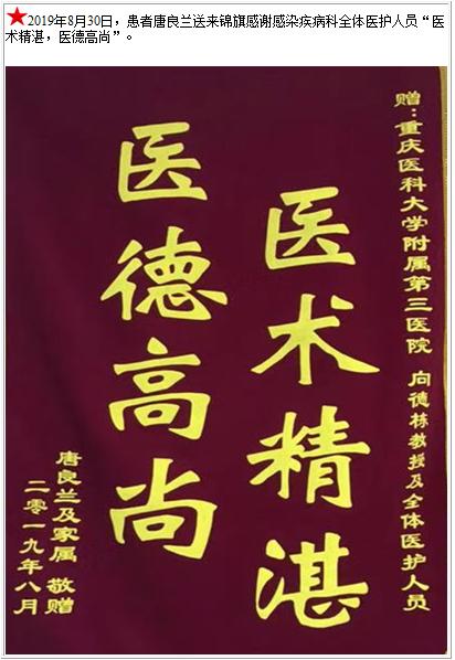 患者唐良兰送来锦旗感谢感染疾病科全体医护人员-锦旗-患者心声-患者服务-重庆医科大学附属第三医院【官方网站】