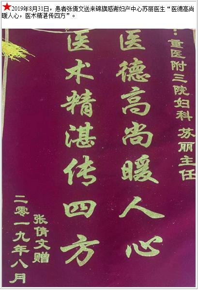 患者张倩文送来锦旗感谢妇产中心苏丽医生-锦旗-患者心声-患者服务-重庆医科大学附属第三医院【官方网站】