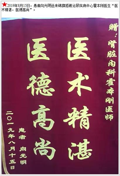 患者向光明送来锦旗感谢泌尿疾病中心霍本刚医生