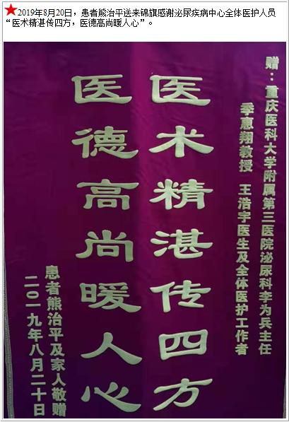 患者熊治平送来锦旗感谢泌尿疾病中心全体医护人员-锦旗-患者心声-患者服务-重庆医科大学附属第三医院【官方网站】