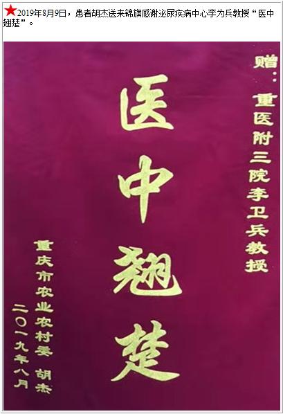 患者胡杰送来锦旗感谢泌尿疾病中心李为兵教授-锦旗-患者心声-患者服务-重庆医科大学附属第三医院【官方网站】