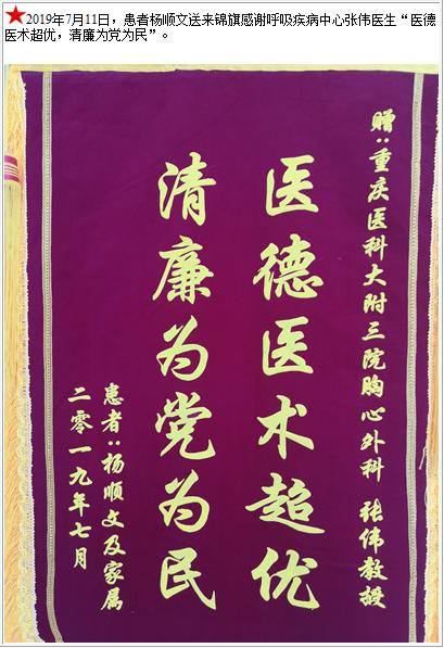 患者杨顺文送来锦旗感谢呼吸疾病中心张伟医生-锦旗-患者心声-患者服务-重庆医科大学附属第三医院【官方网站】