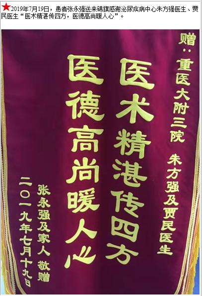 患者张永强送来锦旗感谢泌尿疾病中心朱方强医生、贾民医生-锦旗-患者心声-患者服务-重庆医科大学附属第三医院【官方网站】