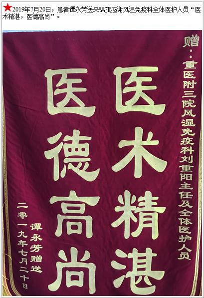 患者谭永芳送来锦旗感谢风湿免疫科全体医护人员-锦旗-患者心声-患者服务-重庆医科大学附属第三医院【官方网站】