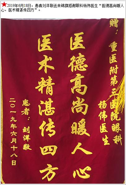患者刘洋敬送来锦旗感谢眼科杨伟医生-锦旗-患者心声-患者服务-重庆医科大学附属第三医院【官方网站】