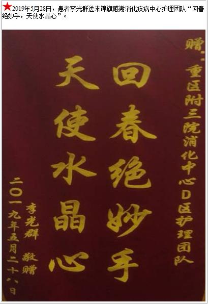 患者李光群送来锦旗感谢消化疾病中心护理团队-锦旗-患者心声-患者服务-重庆医科大学附属第三医院【官方网站】