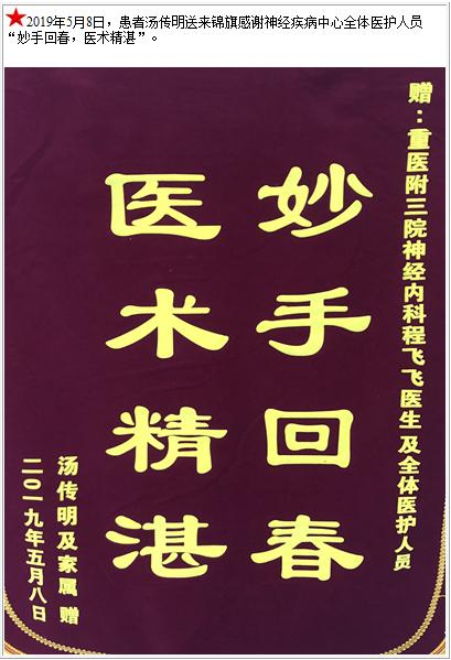 患者汤传明送来锦旗感谢神经疾病中心全体医护人员-锦旗-患者心声-患者服务-重庆医科大学附属第三医院【官方网站】