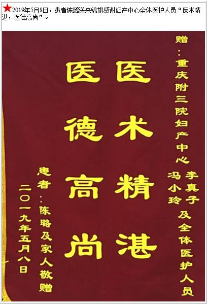 患者陈璐送来锦旗感谢妇产中心全体医护人员-锦旗-患者心声-患者服务-重庆医科大学附属第三医院【官方网站】