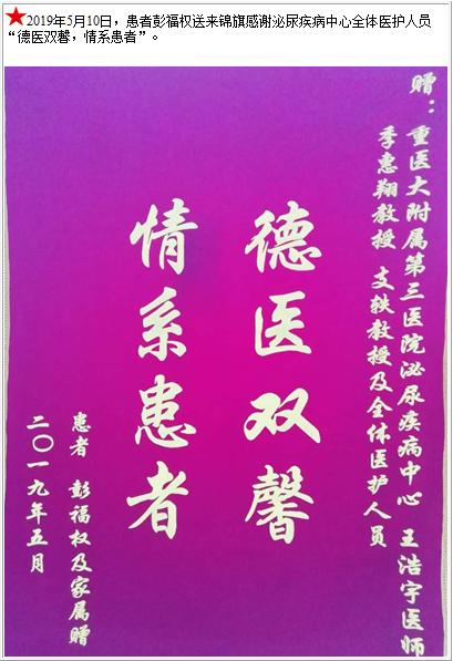 患者彭福权送来锦旗感谢泌尿疾病中心全体医护人员-锦旗-患者心声-患者服务-重庆医科大学附属第三医院【官方网站】