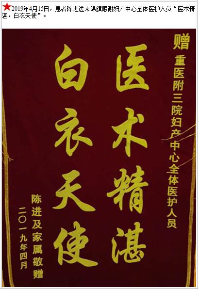 患者陈进送来锦旗感谢妇产中心全体医护人员-锦旗-患者心声-患者服务-重庆医科大学附属第三医院【官方网站】