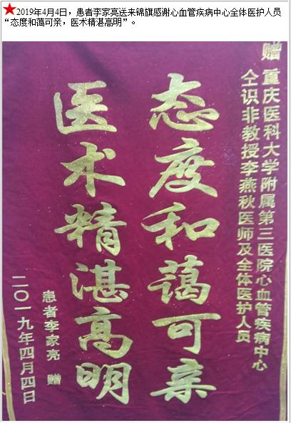患者李家亮送来锦旗感谢心血管疾病中心全体医护人员-锦旗-患者心声-患者服务-重庆医科大学附属第三医院【官方网站】