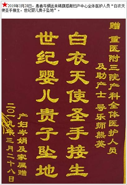 患者岑娟送来锦旗感谢妇产中心全体医护人员-锦旗-患者心声-患者服务-重庆医科大学附属第三医院【官方网站】