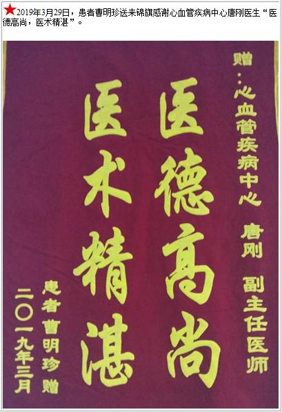 患者曹明珍送来锦旗感谢心血管疾病中心唐刚医生-锦旗-患者心声-患者服务-重庆医科大学附属第三医院【官方网站】
