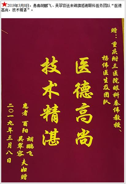 患者胡鹏飞、吴翠容送来锦旗感谢眼科医务团队-锦旗-患者心声-患者服务-重庆医科大学附属第三医院【官方网站】