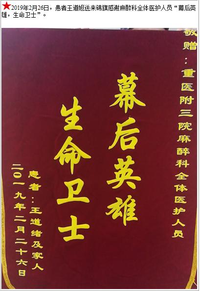 患者王道旭送来锦旗感谢麻醉科全体医护人员-锦旗-患者心声-患者服务-重庆医科大学附属第三医院【官方网站】