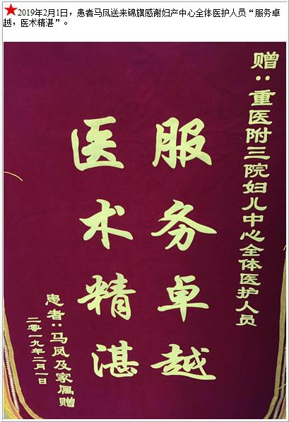 患者马凤送来锦旗感谢妇产中心全体医护人员-锦旗-患者心声-患者服务-重庆医科大学附属第三医院【官方网站】