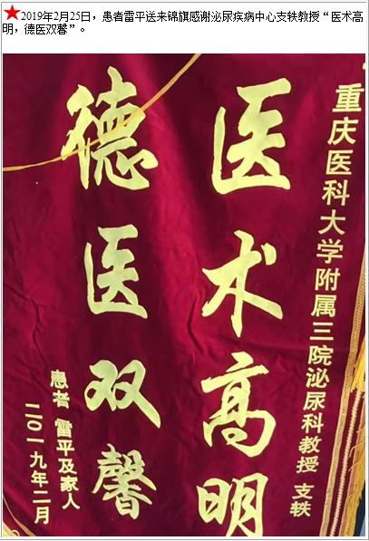 患者雷平送来锦旗感谢泌尿疾病中心支轶教授-锦旗-患者心声-患者服务-重庆医科大学附属第三医院【官方网站】