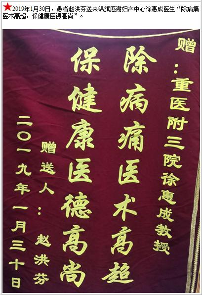 患者赵洪芬送来锦旗感谢妇产中心徐惠成医生-锦旗-患者心声-患者服务-重庆医科大学附属第三医院【官方网站】