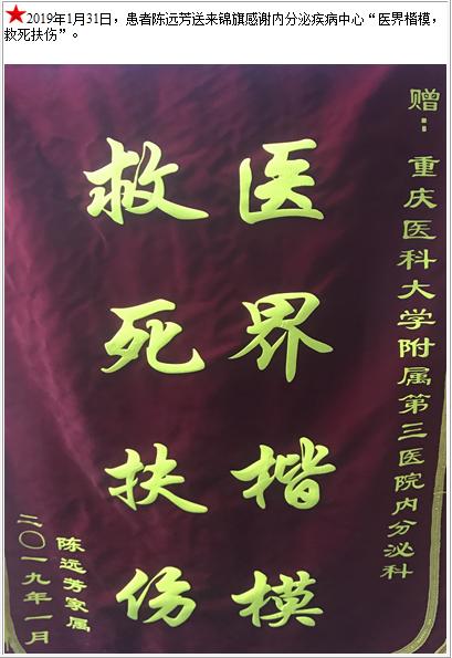 患者陈远芳送来锦旗感谢内分泌疾病中心-锦旗-患者心声-患者服务-重庆医科大学附属第三医院【官方网站】
