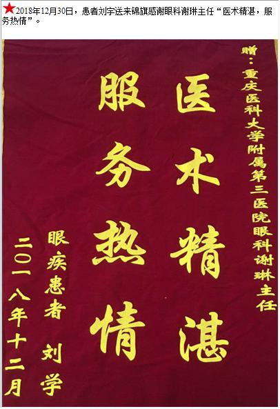患者刘宇送来锦旗感谢眼科谢琳主任-锦旗-患者心声-患者服务-重庆医科大学附属第三医院【官方网站】