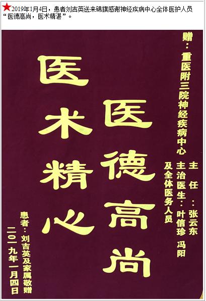 患者刘吉英送来锦旗感谢神经疾病中心全体医护人员-锦旗-患者心声-患者服务-重庆医科大学附属第三医院【官方网站】