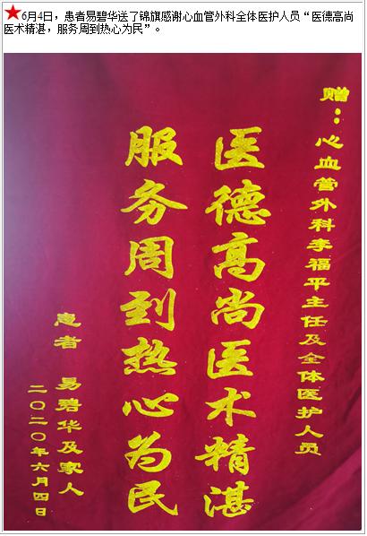 患者易碧华送了锦旗感谢心血管外科全体医护人员“医德高尚医术精湛,服务周到热心为民”