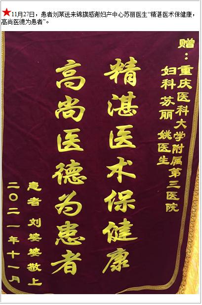 患者刘某送来锦旗感谢妇产中心苏丽医生“精湛医术保健康,高尚医德为患者”-锦旗-患者心声-患者服务-重庆医科大学附属第三医院【官方网站】