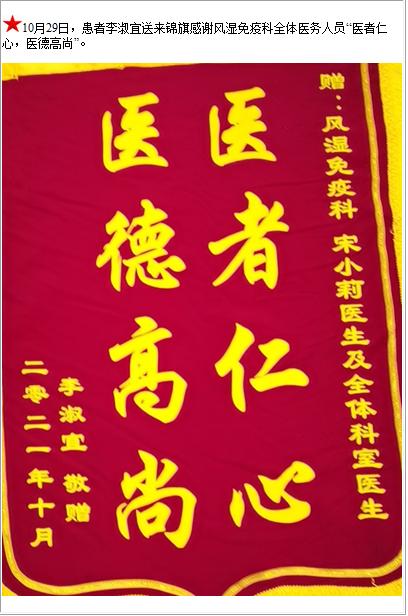 患者李淑宜送来锦旗感谢风湿免疫科全体医务人员“医者仁心,医德高尚”-锦旗-患者心声-患者服务-重庆医科大学附属第三医院【官方网站】