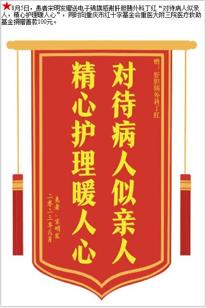 患者宋明发赠送电子锦旗感谢肝胆胰外科丁红,并向医疗救助基金捐赠善款100元-锦旗-患者心声-患者服务-重庆医科大学附属第三医院【官方网站】